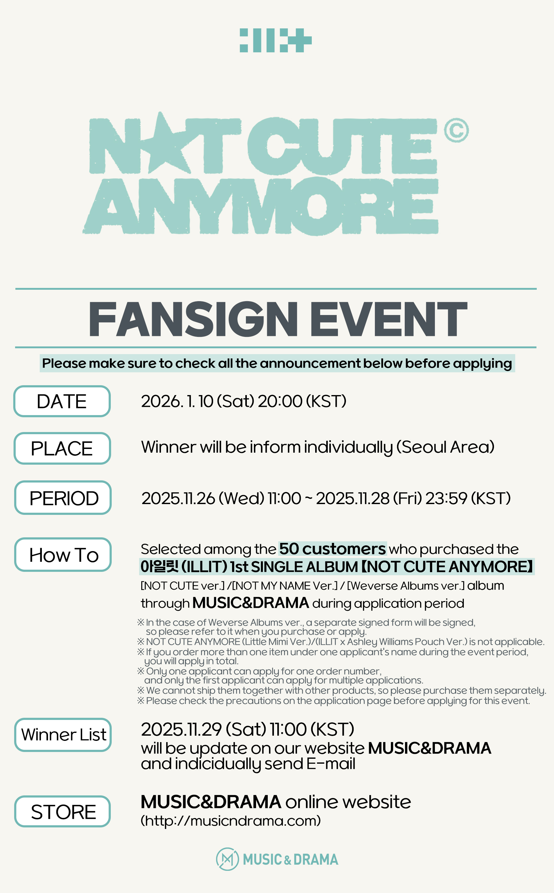 Customer Service Center: +82-70-7537-2670 / email: musicndrama@musicndrama.com