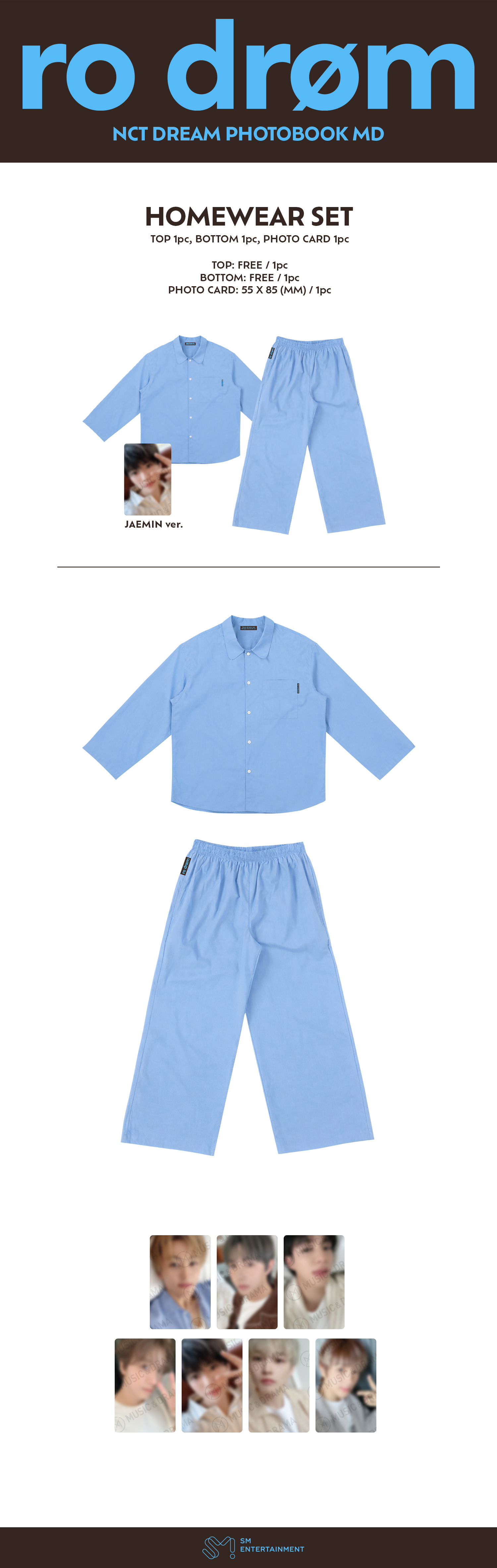 Item : [Ro drøm] HOMEWEAR SET (Top 1pc, Bottom 1pc, Photo Card 1pc)