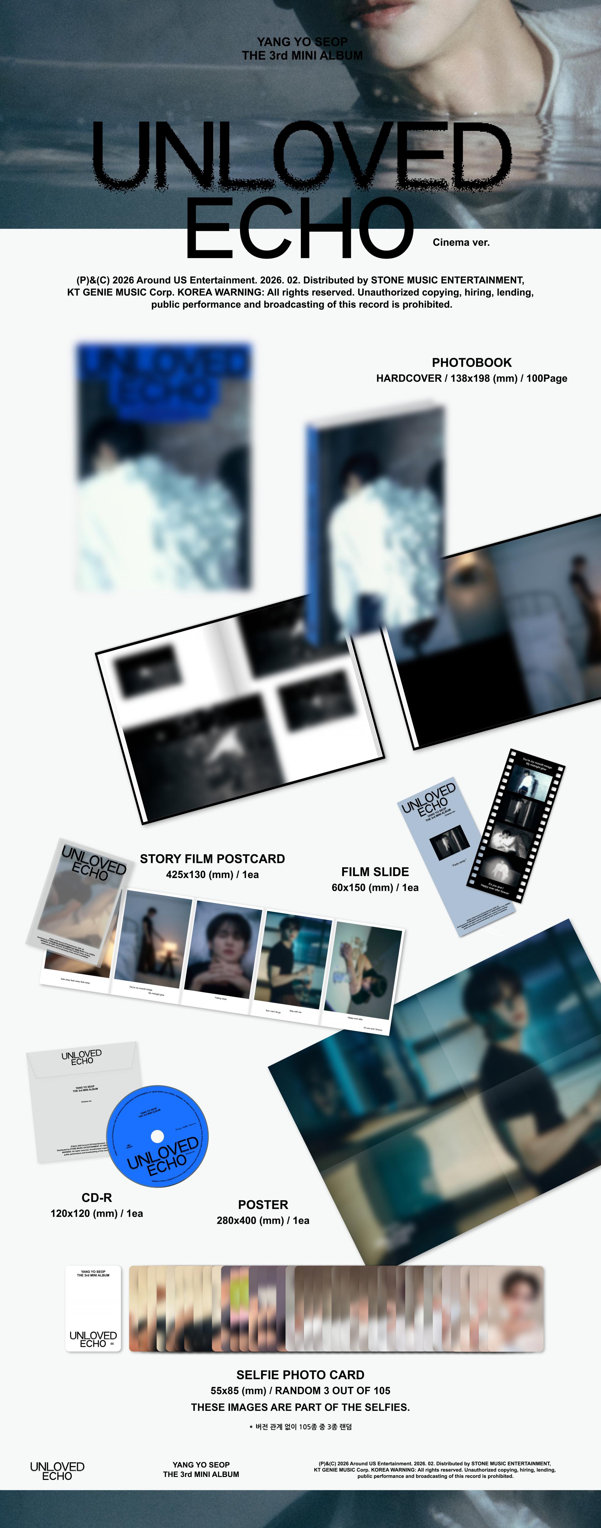 이번 앨범의 제목은 [Unloved Echo] 입니다. 사라진 사랑의 잔상, 메아리, 사랑이 끝나고 난 뒤에도 마음 속에 남아 계속 울리는 여운 같은 것을 의미합니다. 앨범에 수록된 총 여섯 곡에서 아마 각기 다른 사랑의 형태를 보실 수 있을 텐데요, 그 사랑들이 듣는 이의 마음에 또 각각 어떻게 남을지는 잘 모르겠습니다. 항상 그런 거 같아요. 모든 사람이 다 똑같은 곡을 (제일) 좋아하지는 않는 것처럼, 같은 곡을 들어도 또 마음에 남는 느낌은 다 다르더라고요. 궁금해요. 이번에 보내는 내 노래들은 어떤 모습으로 당신의 마음에 남을까요?